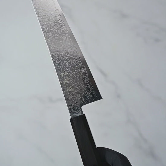 Made in Seki, Japan, the Hatsukokoro Ryuhyo kiritsuke gyuto features an SG2 stainless steel core with damascus cladding and a mirror finish. The 217mm edge and 48.3mm heel height provide versatile cutting performance, while its thin geometry and lightweight build make it nimble in use. Full stainless construction ensures no concerns about rust or corrosion. Suitable for both home cooks and professional chefs, including those seeking their first Japanese knife or preferring lightweight chef knives.